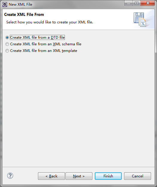选择"Create XML file from DTD file",然后Next